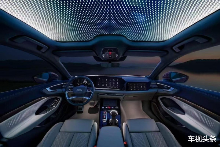 最妙的创新,往往藏在细节里。宽阔扁平的一体式进气格栅,采用三维蜂窝状结构,搭配纤巧精致的大灯及全新设计的发光四环logo,一起勾勒出醒目且专注的前脸造型——在夜间行车时,这道光带就是奥迪车主无需言说的身份密码。引擎盖上的勺型切口,灵感源自猎豹面部的黑色泪线,这个看似装饰性的设计,实则能将强光折射至车顶而非驾驶员面部,比任何遮阳板都更懂人性需求。